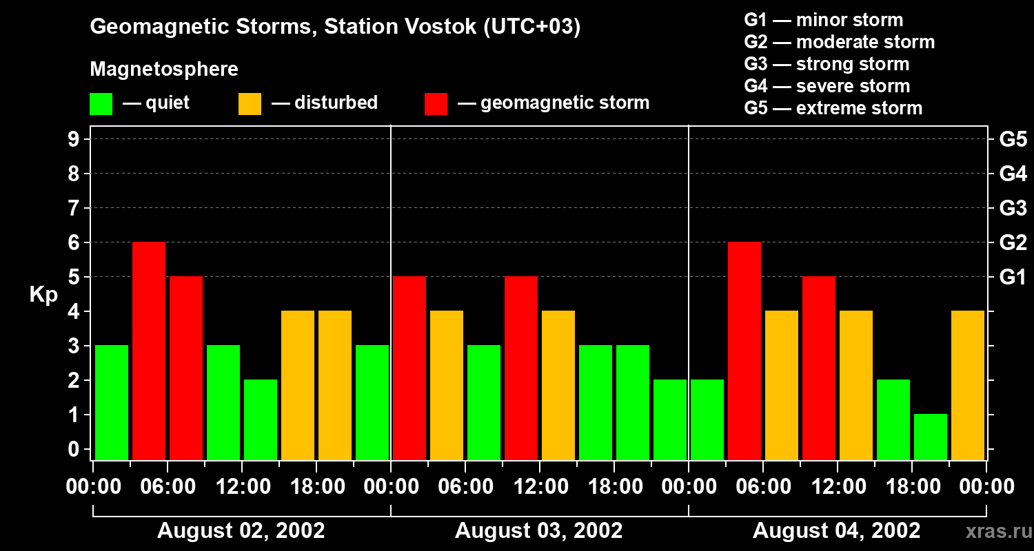 Geomagnetic storms in Station Vostok — Aug 04, 2002