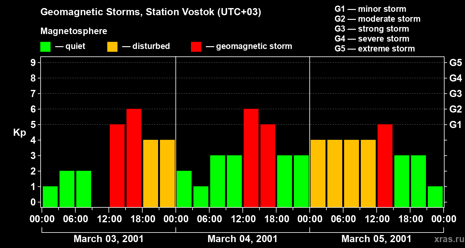 Geomagnetic storms in Station Vostok — Mar 05, 2001