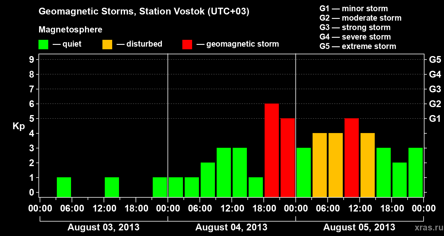 Geomagnetic storms in Station Vostok — Aug 05, 2013