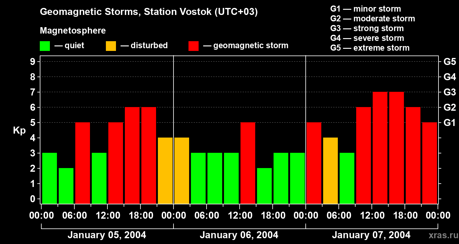 Geomagnetic storms in Station Vostok — Jan 07, 2004