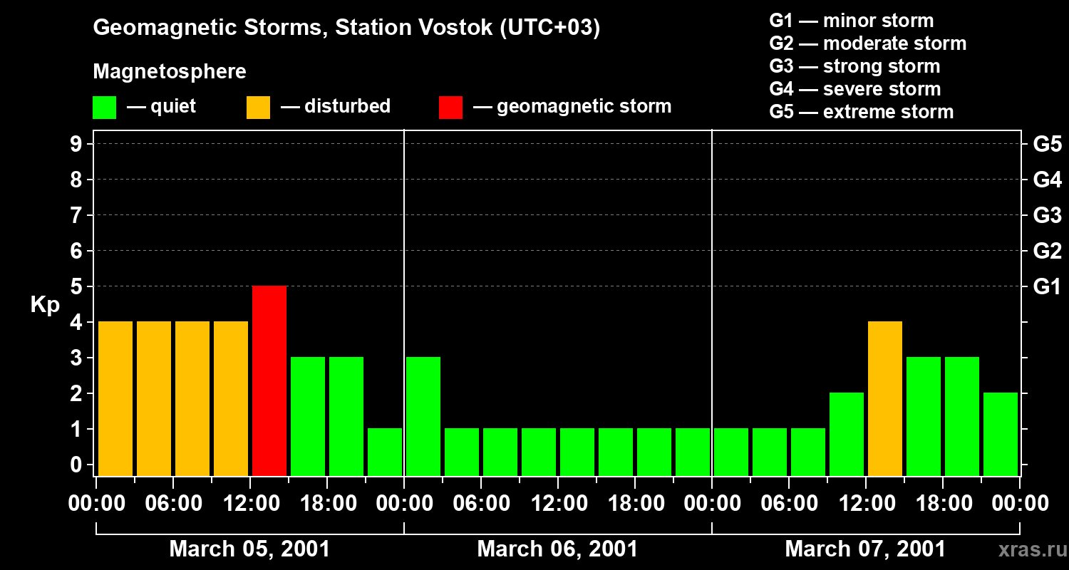 Geomagnetic storms in Station Vostok — Mar 07, 2001