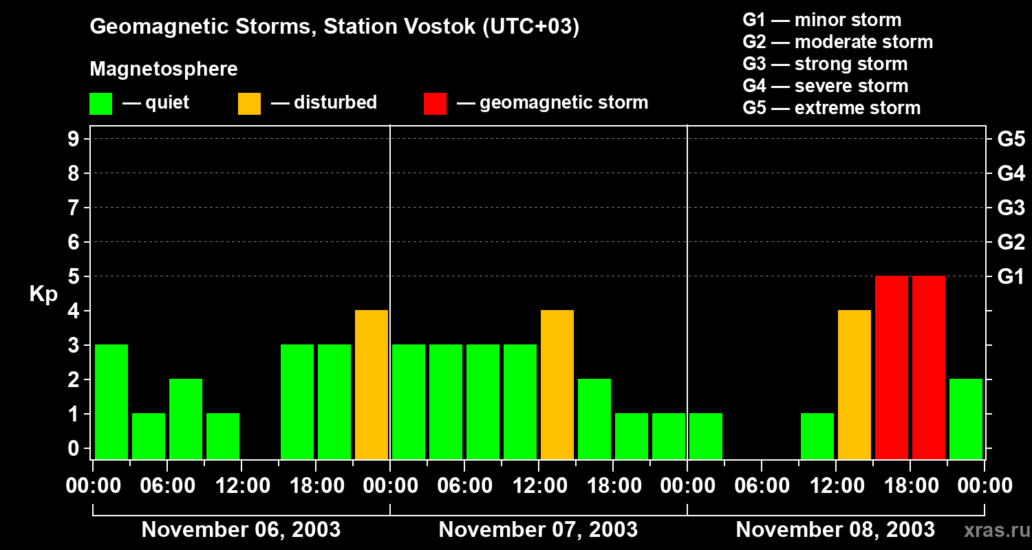 Geomagnetic storms in Station Vostok — Nov 08, 2003