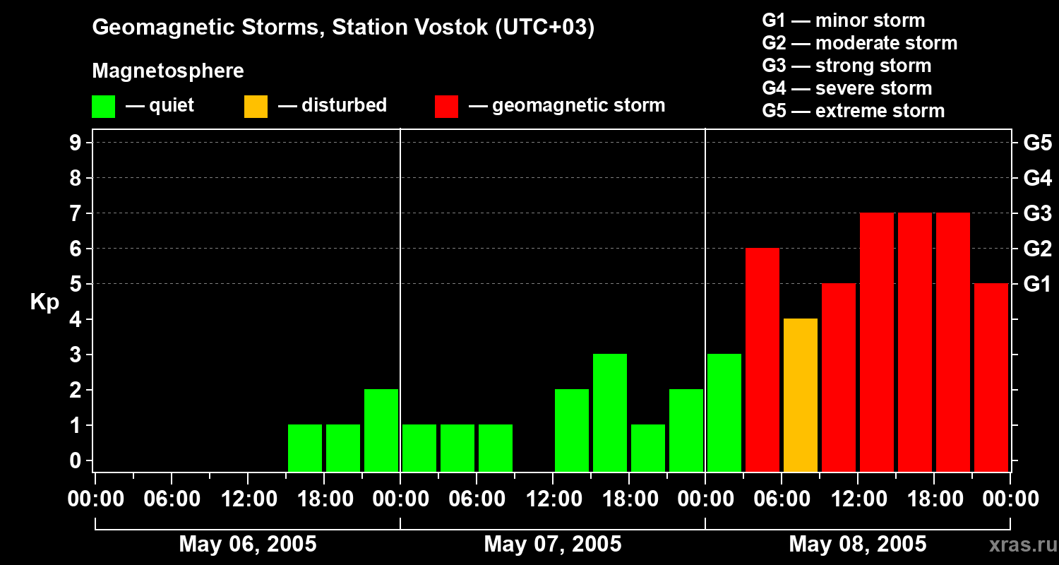 Geomagnetic storms in Station Vostok — May 08, 2005