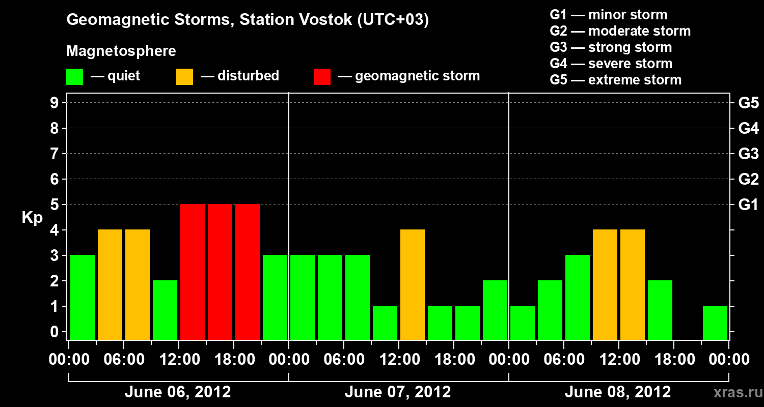 Geomagnetic storms in Station Vostok on Jun 08, 2012