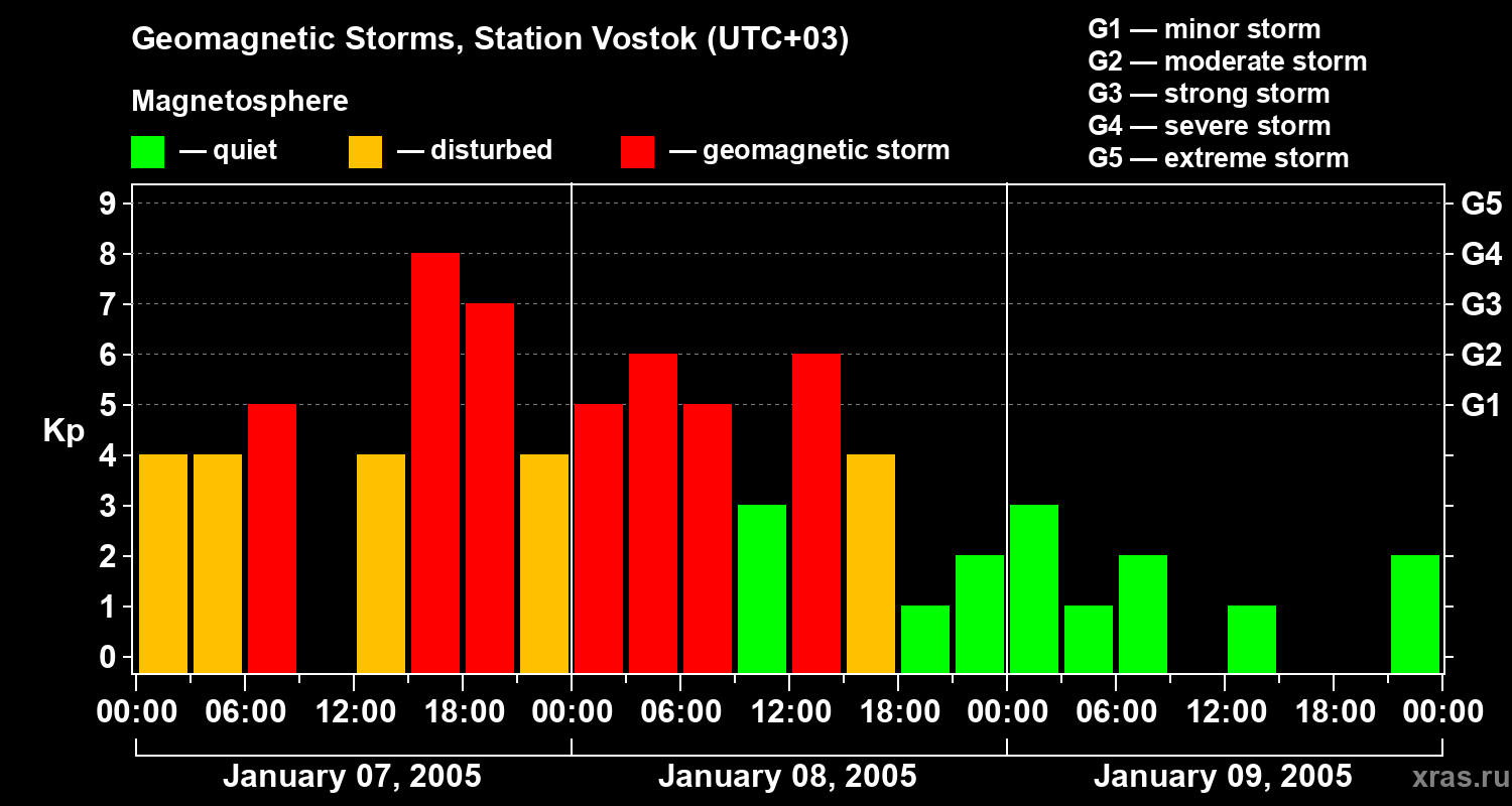 Geomagnetic storms in Station Vostok — Jan 09, 2005