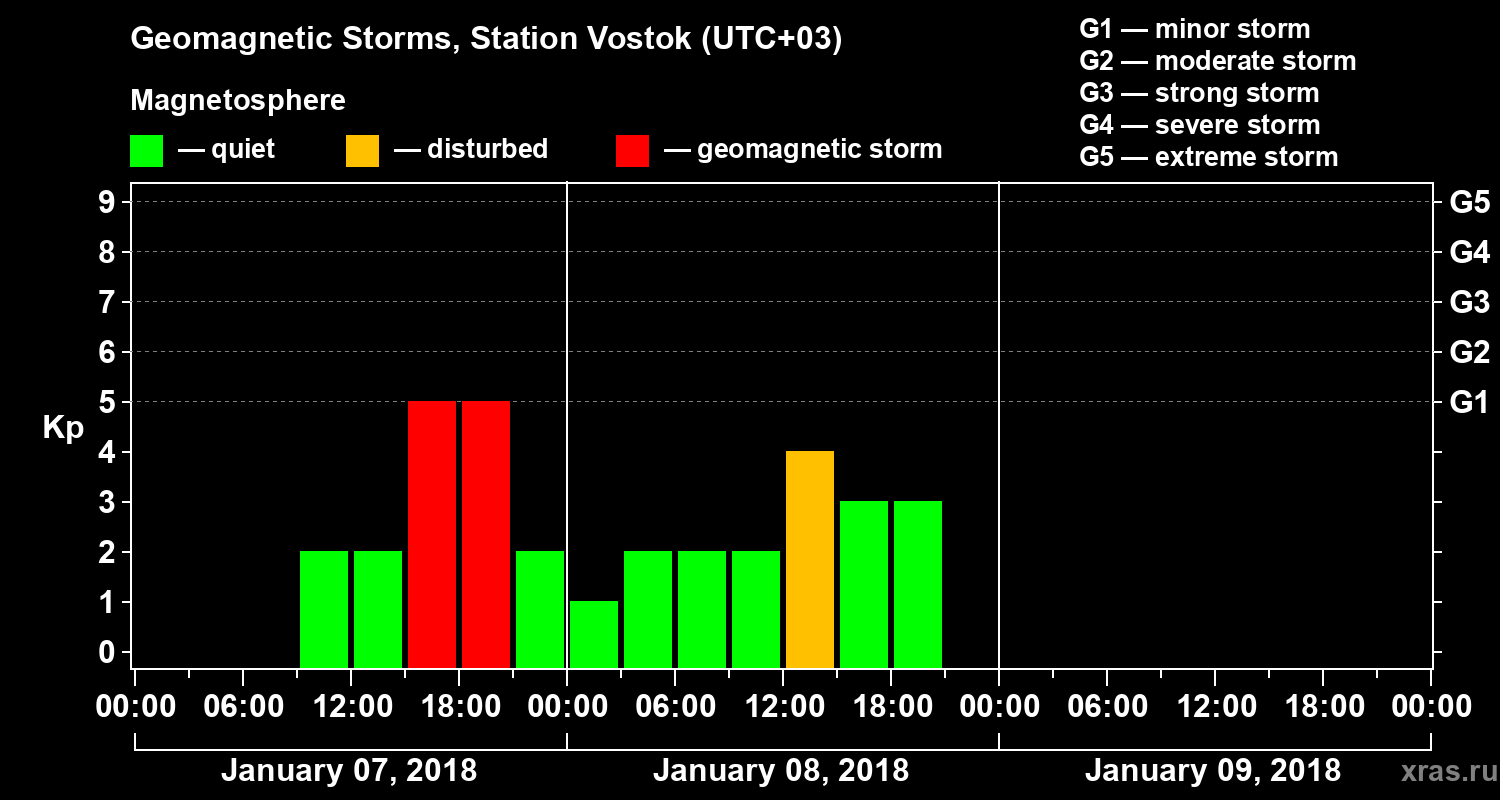 Geomagnetic storms in Station Vostok on Jan 09, 2018