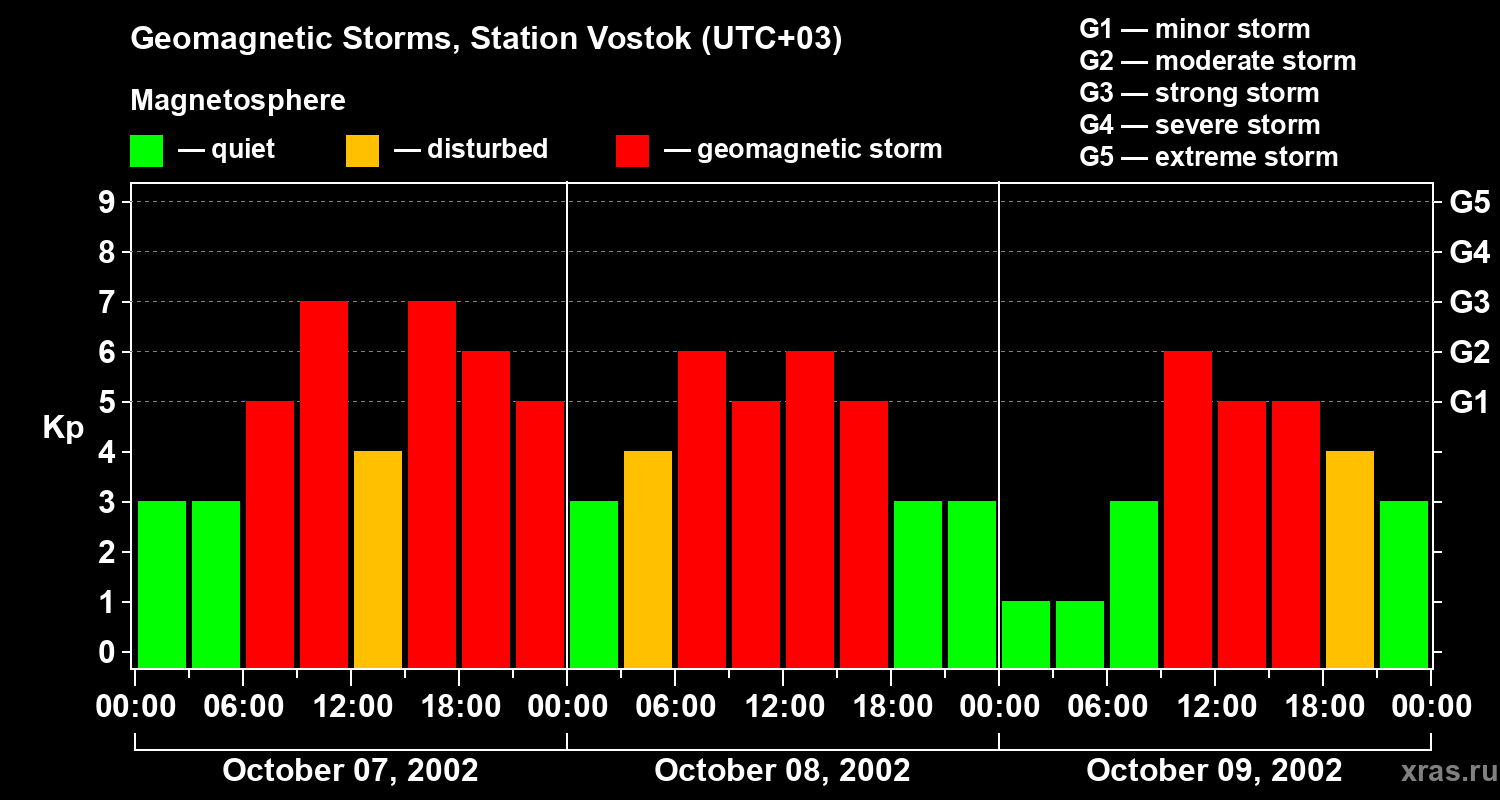 Geomagnetic storms in Station Vostok — Oct 09, 2002