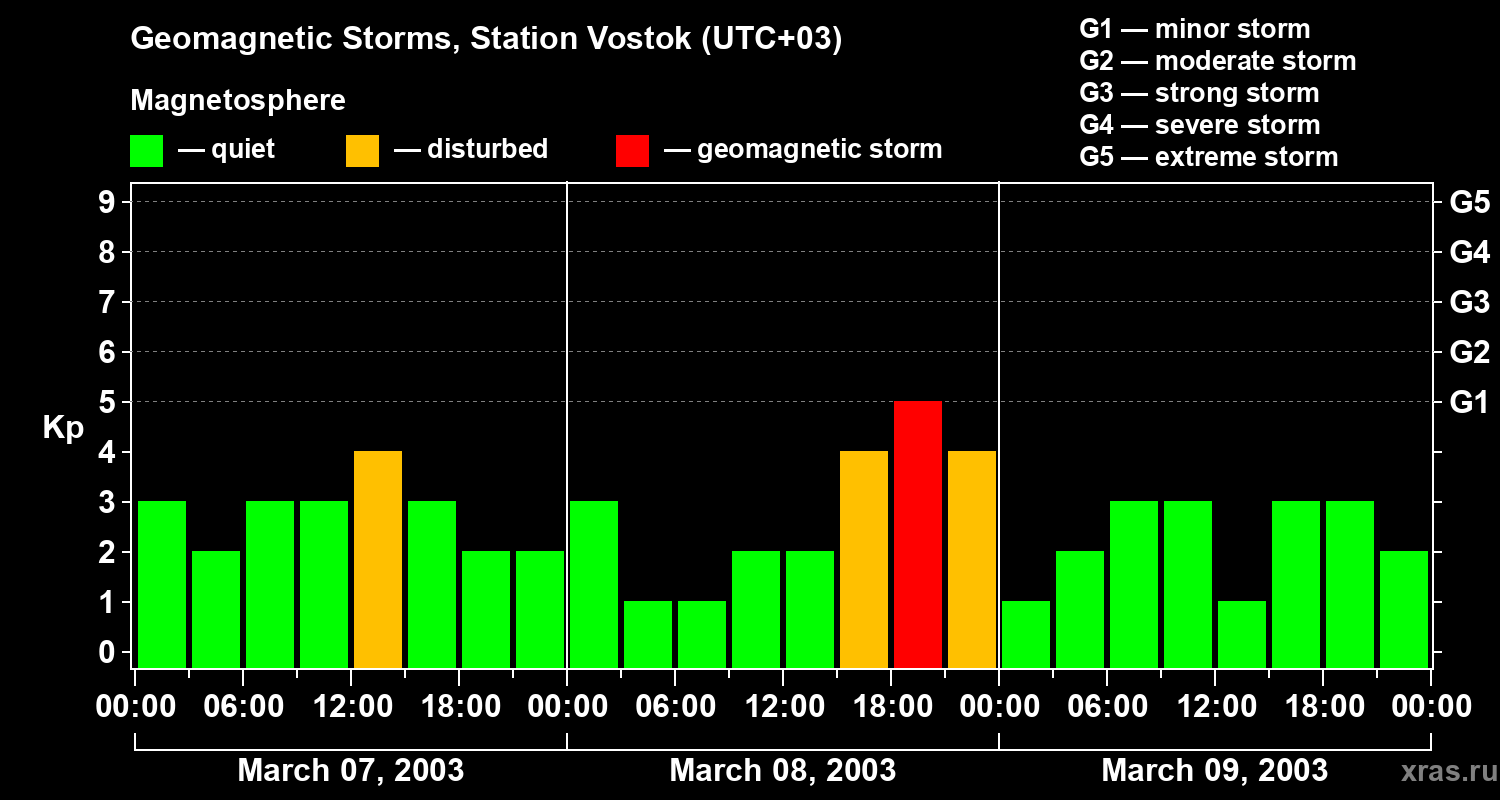 Geomagnetic storms in Station Vostok — Mar 09, 2003