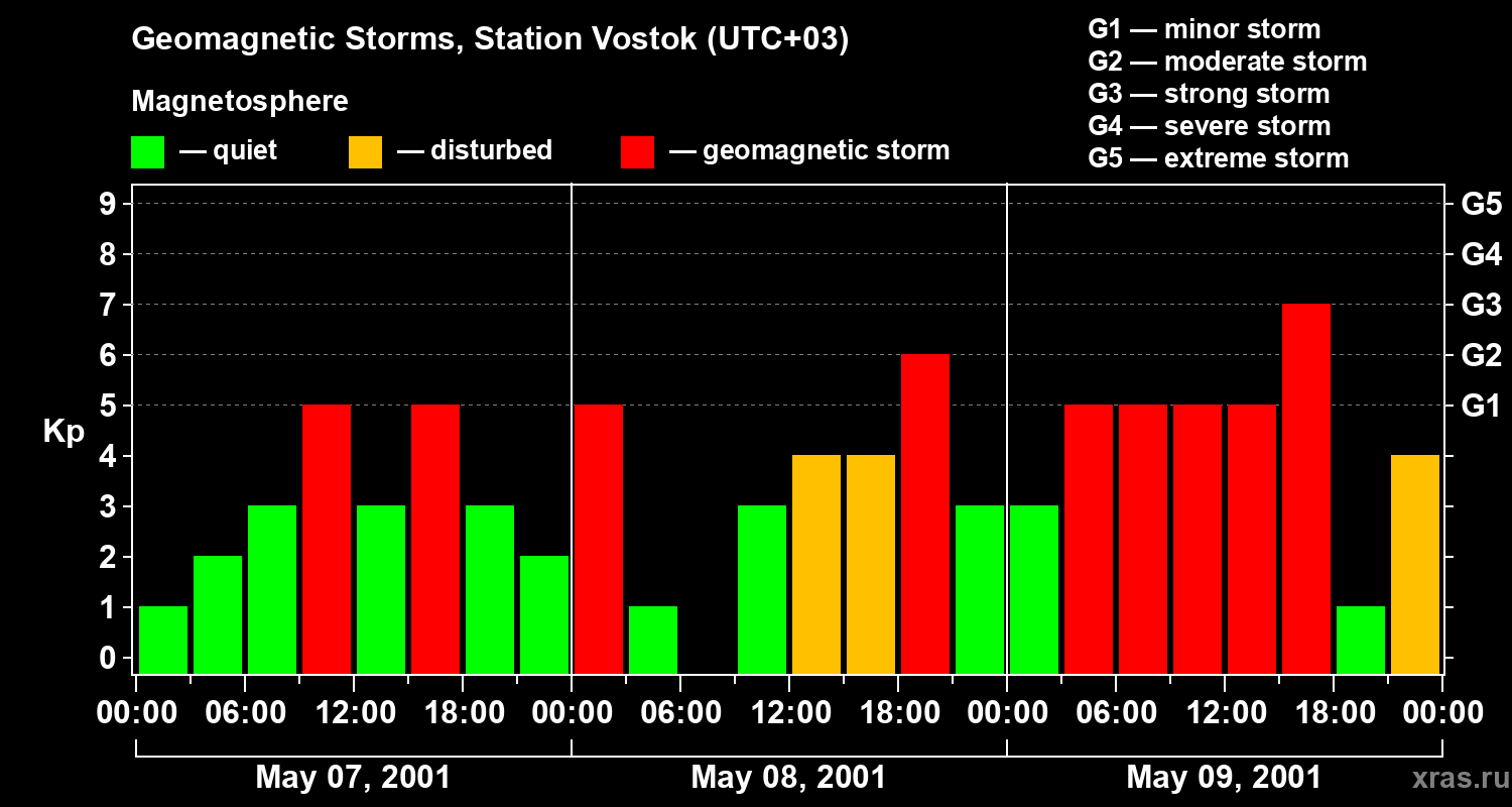 Geomagnetic storms in Station Vostok — May 09, 2001