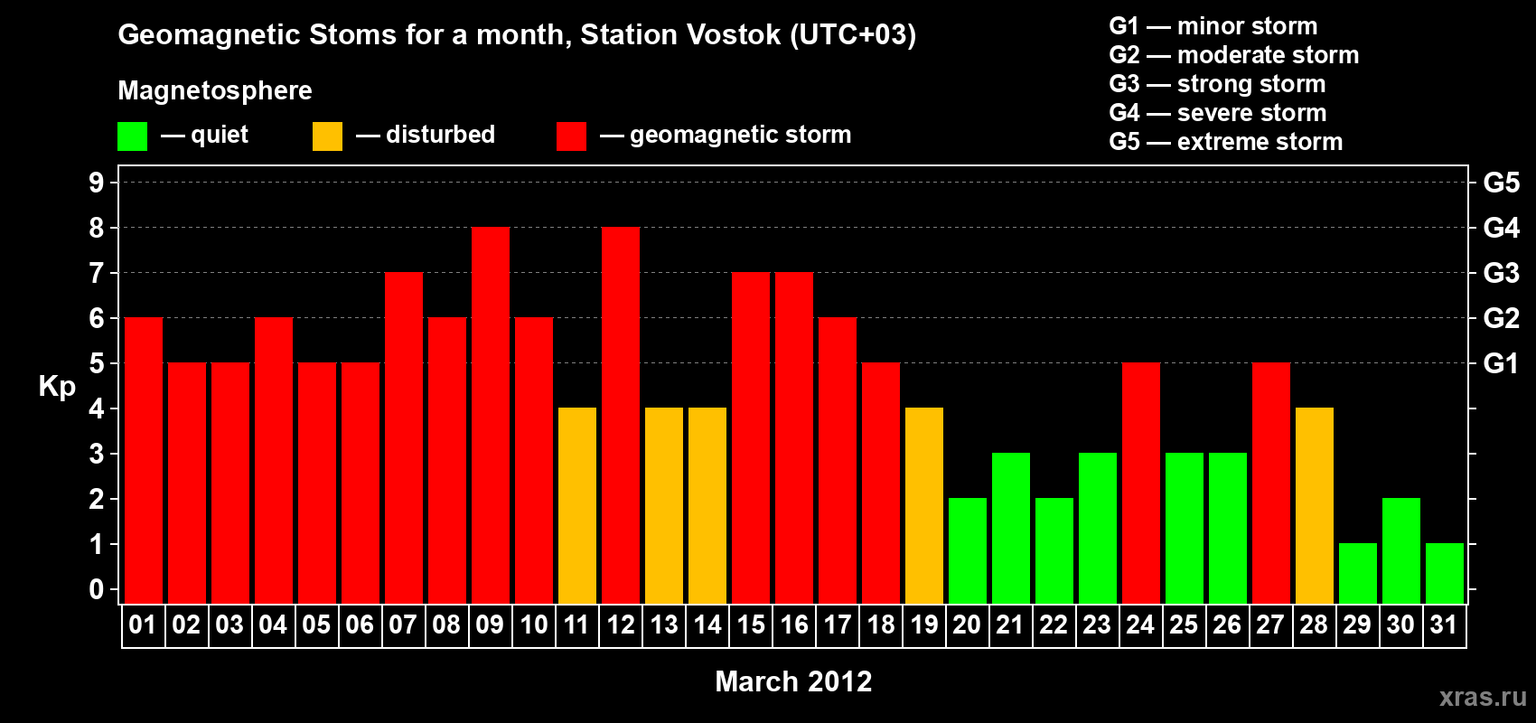 List of magnetic storms in March 2012