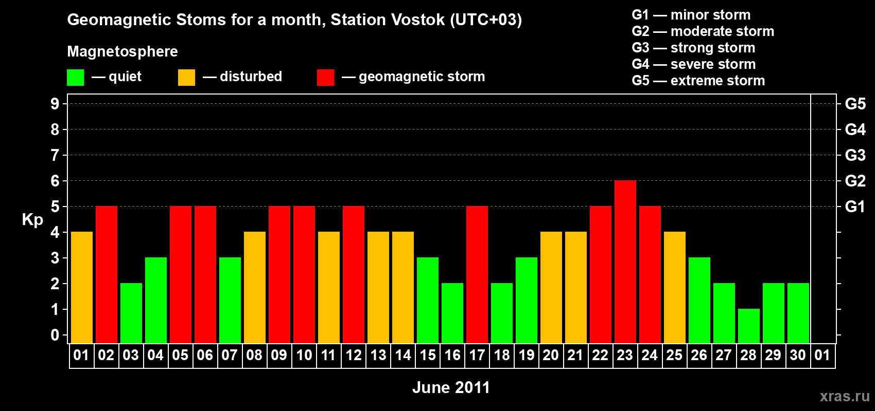 List of magnetic storms in June 2011