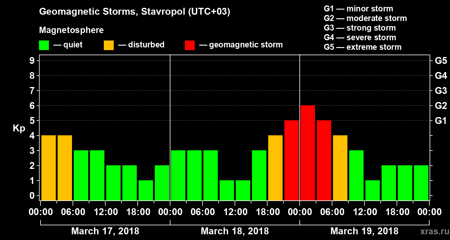 Geomagnetic storms in Stavropol in March 2018