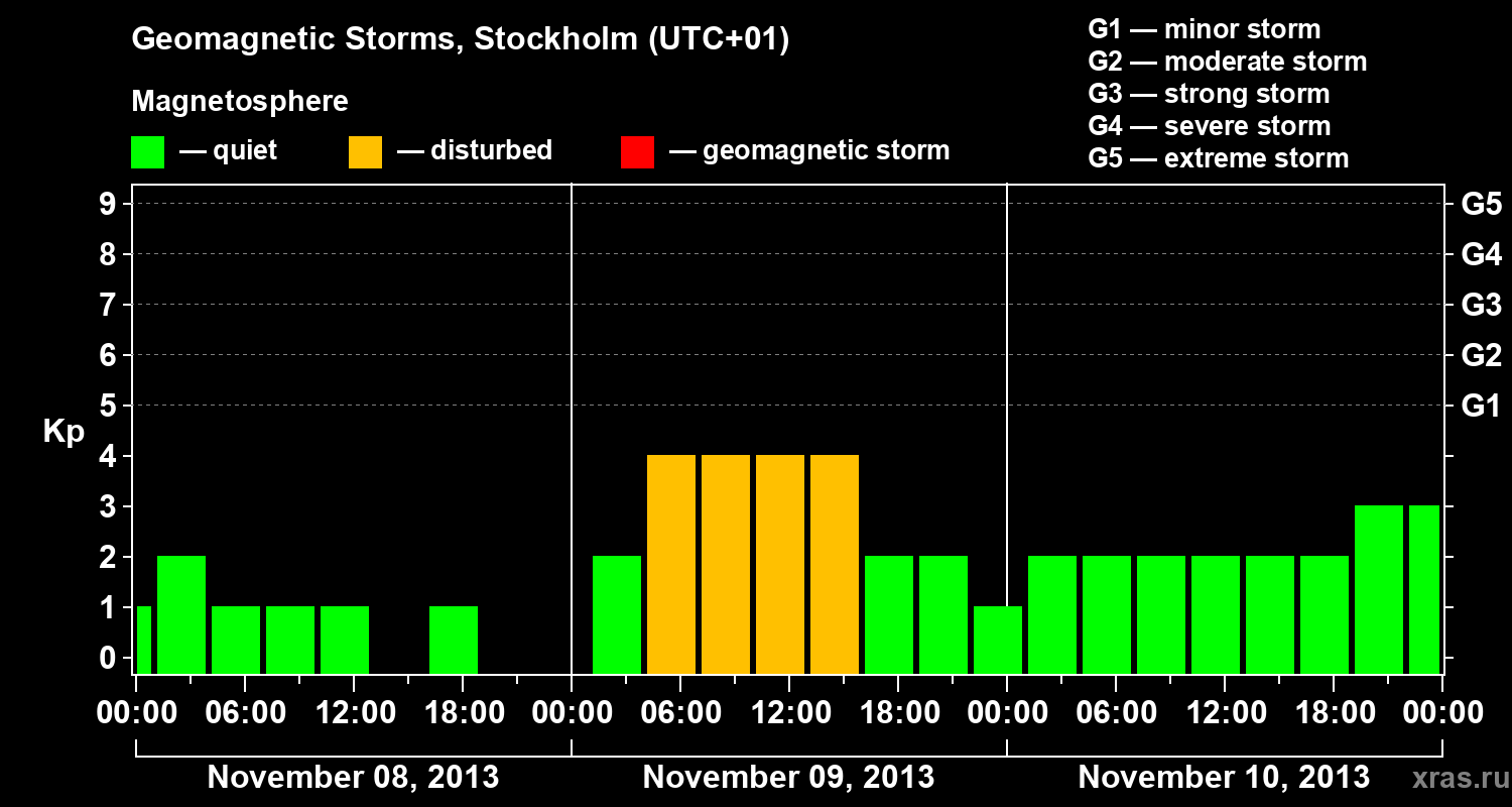 Geomagnetic storms in Stockholm in November 2013