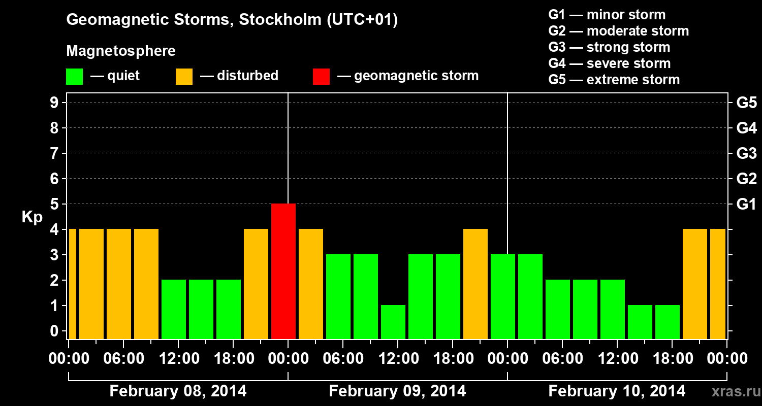 Geomagnetic storms in Stockholm on Feb 10, 2014