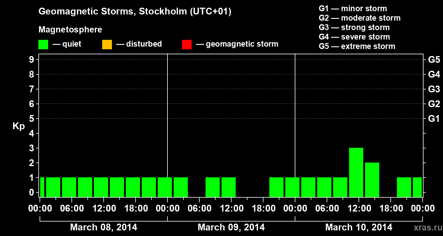 Geomagnetic storms in Stockholm — Mar 10, 2014