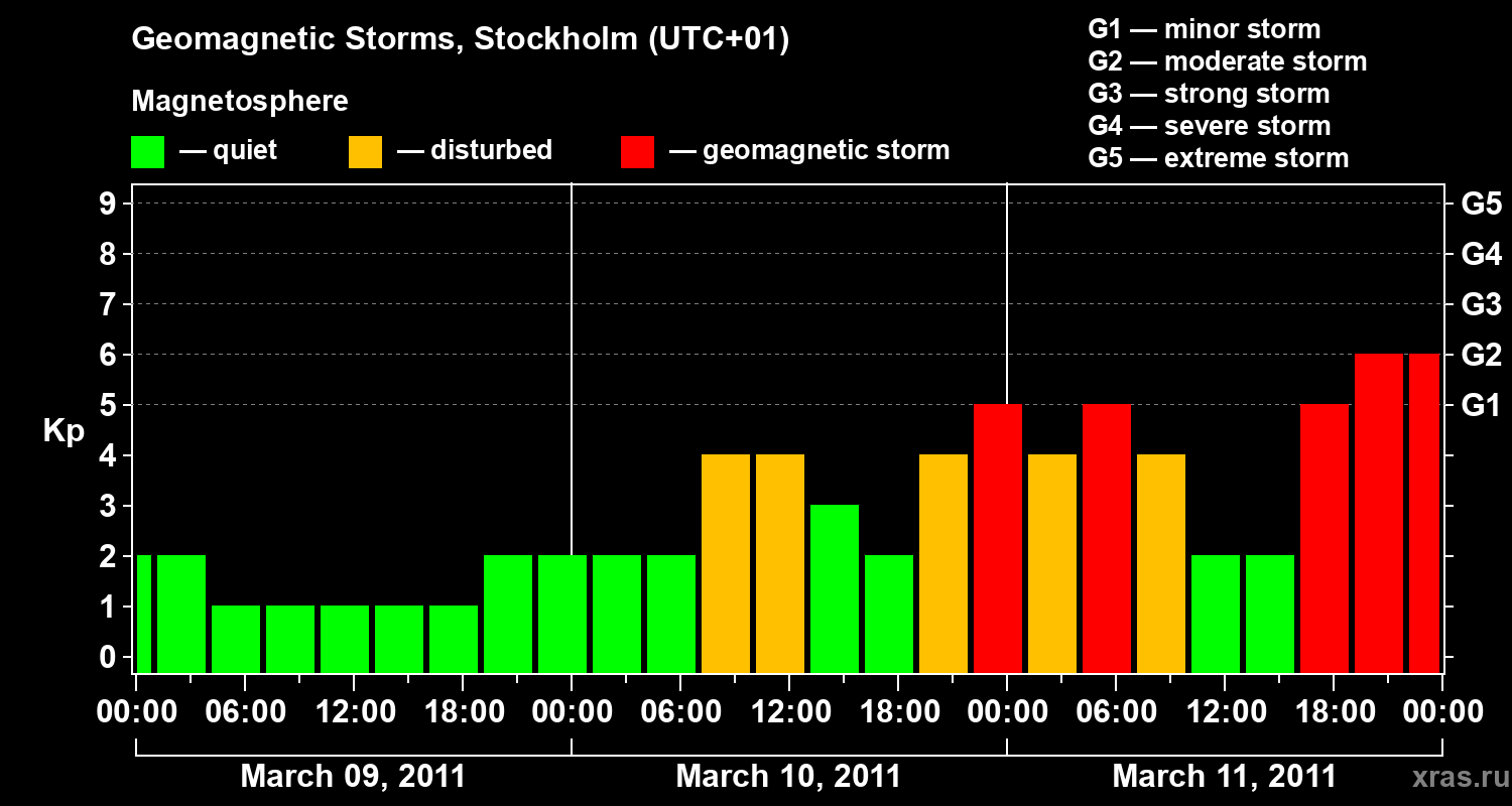 Geomagnetic storms in Stockholm in March 2011