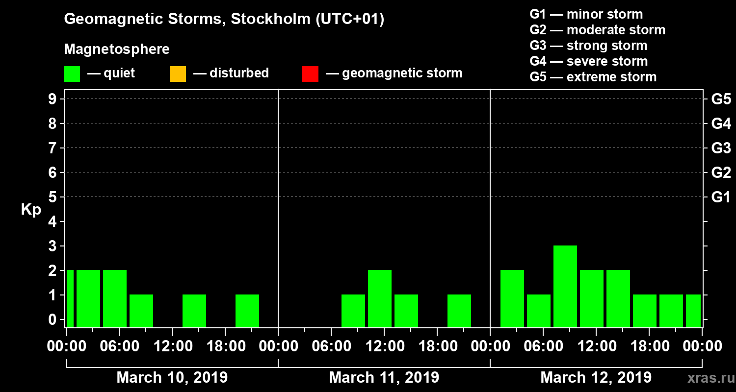 Geomagnetic storms in Stockholm on Mar 12, 2019