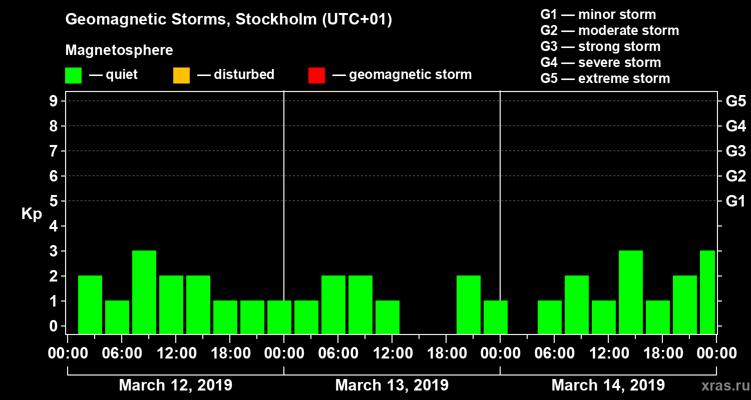 Geomagnetic storms in Stockholm on Mar 14, 2019