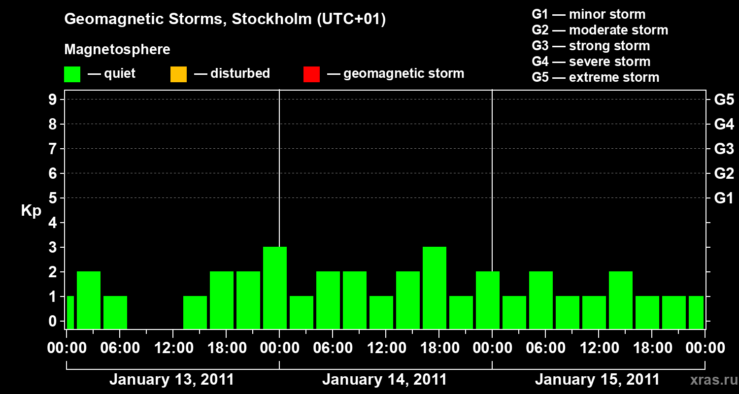 Geomagnetic storms in Stockholm on Jan 15, 2011