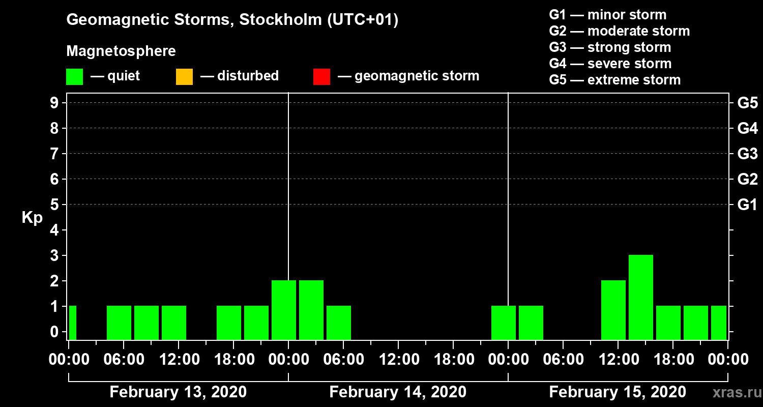 Geomagnetic storms in Stockholm on Feb 15, 2020