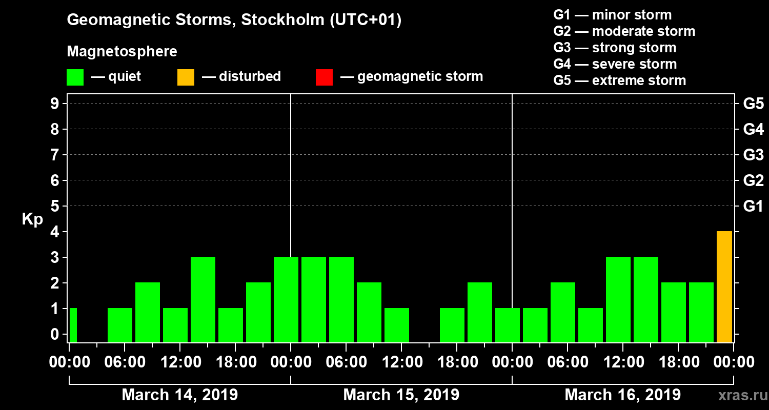 Geomagnetic storms in Stockholm on Mar 16, 2019