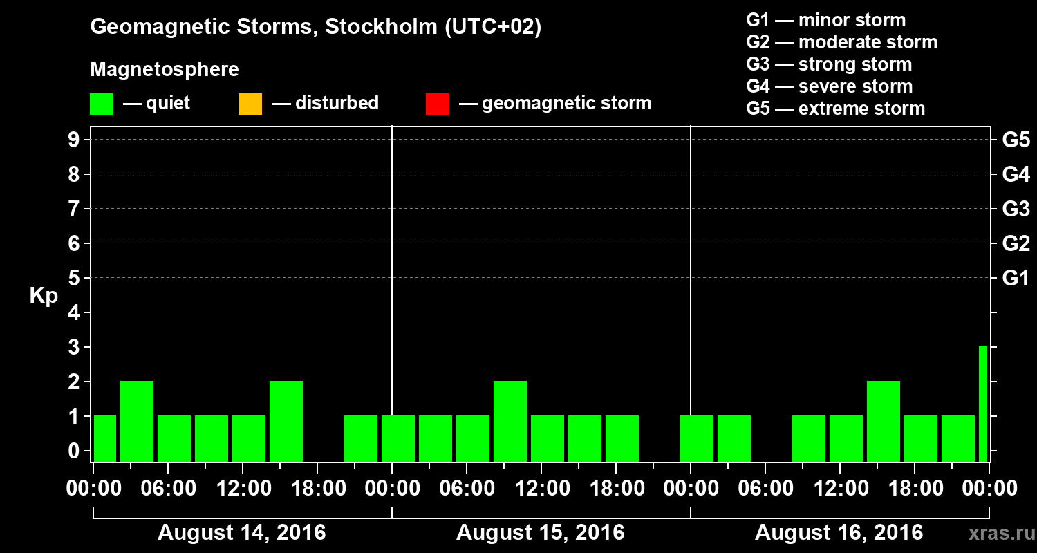 Geomagnetic storms in Stockholm — Aug 16, 2016