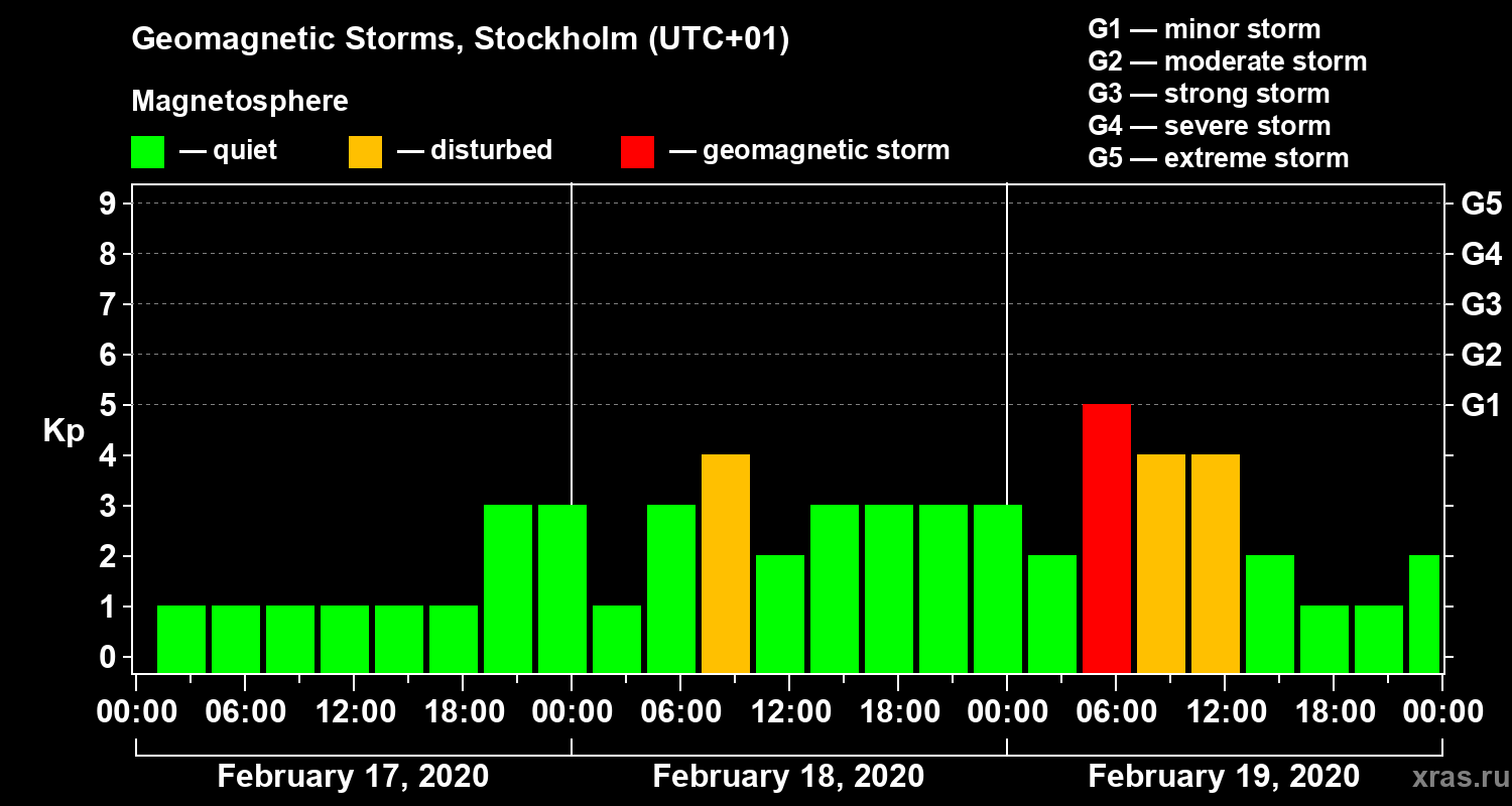 Geomagnetic storms in Stockholm on Feb 19, 2020