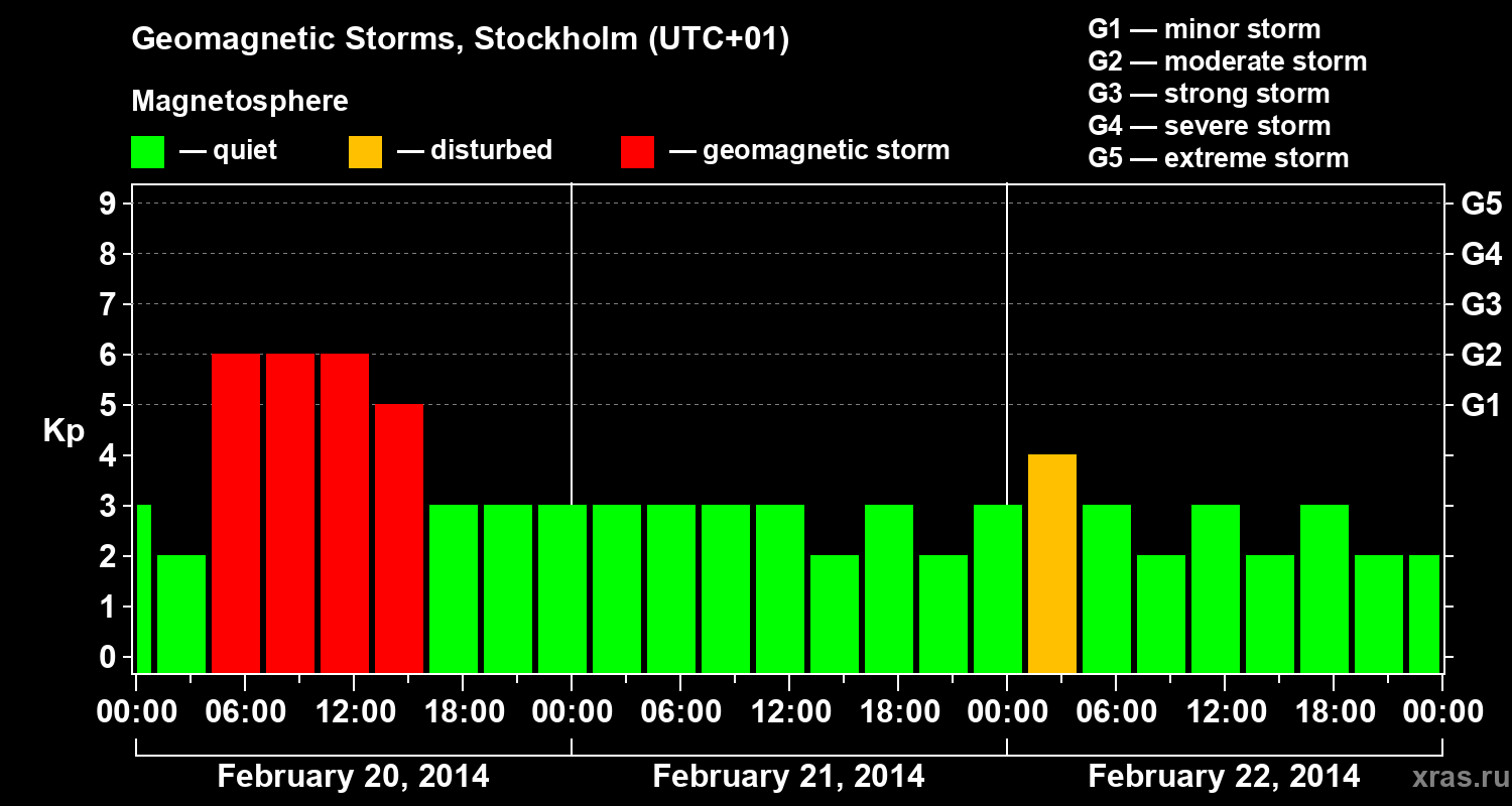 Geomagnetic storms in Stockholm on Feb 22, 2014