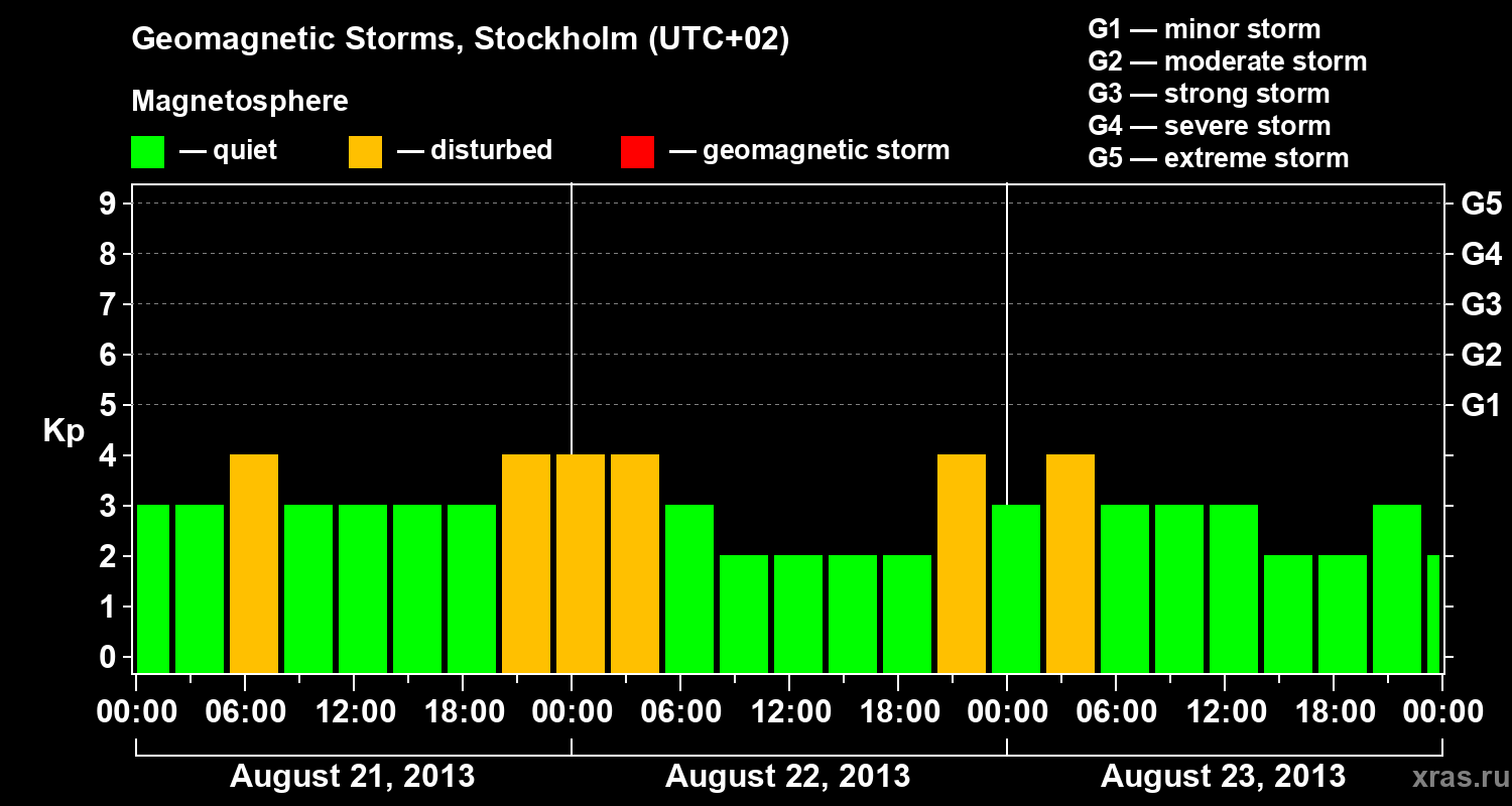 Geomagnetic storms in Stockholm in August 2013