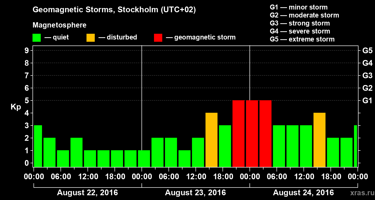 Geomagnetic storms in Stockholm — Aug 24, 2016