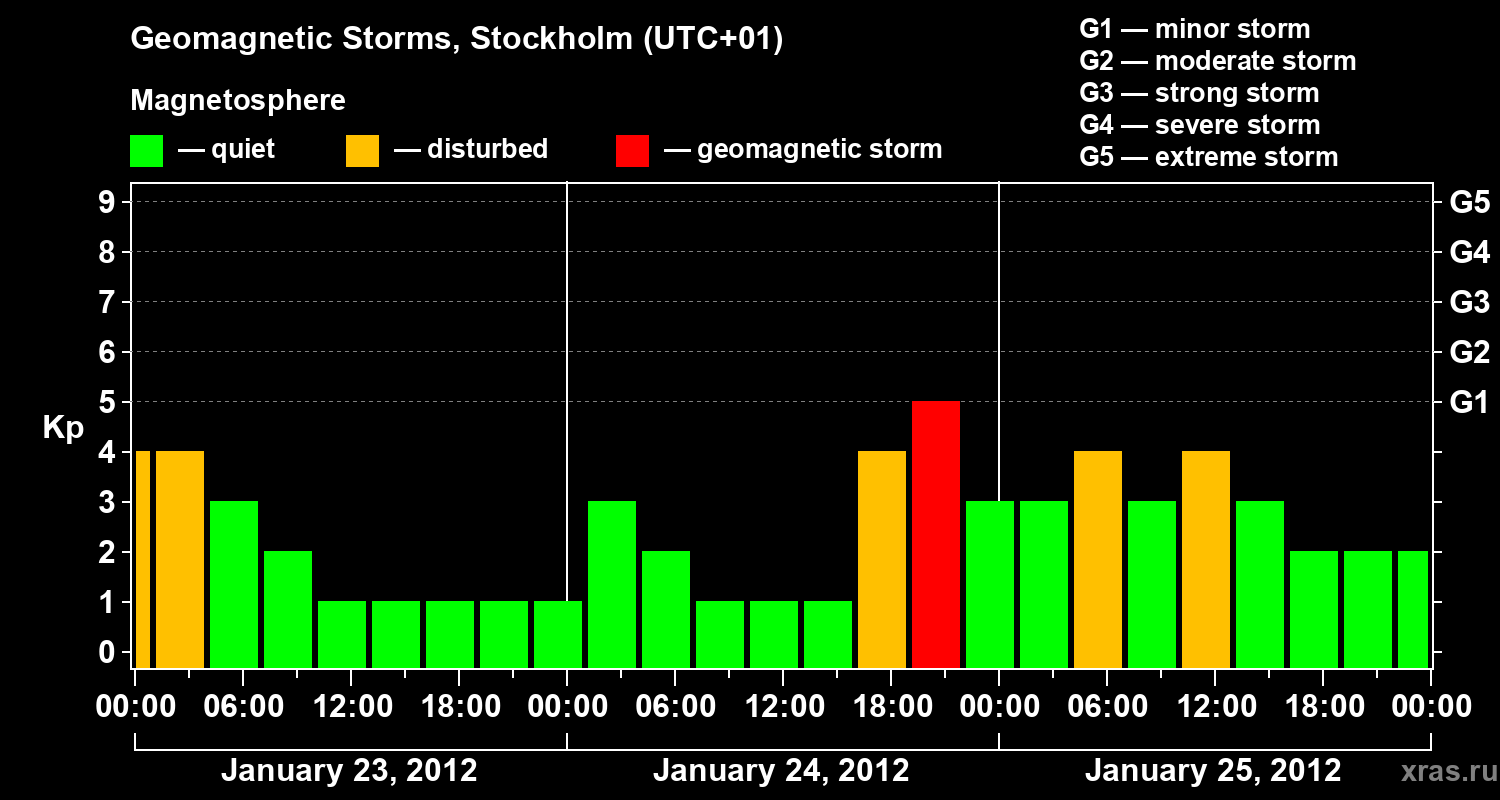 Geomagnetic storms in Stockholm in January 2012