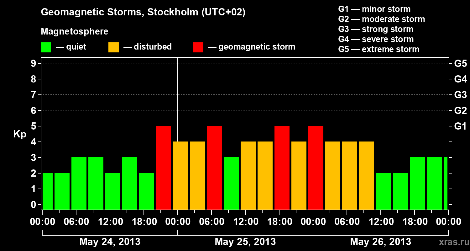 Geomagnetic storms in Stockholm in May 2013