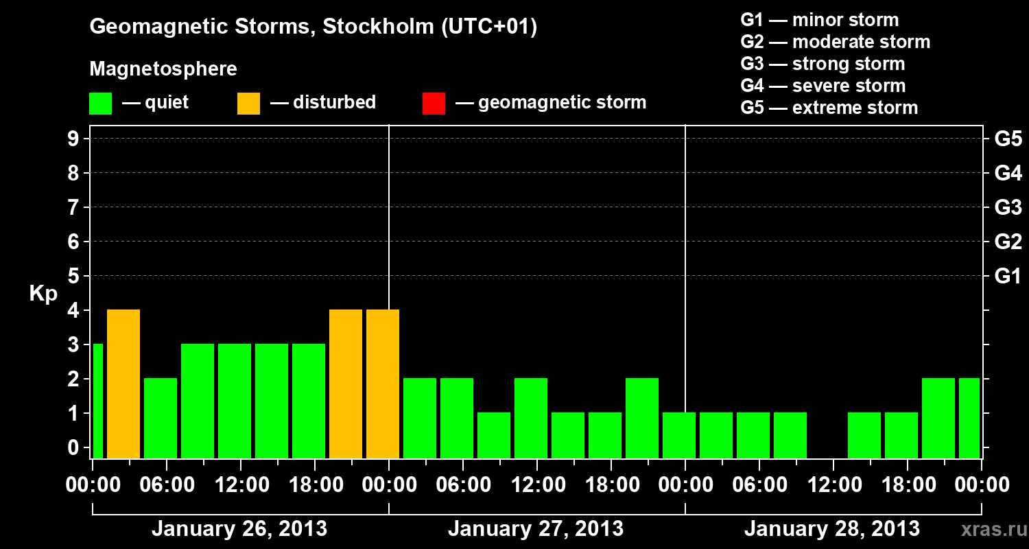 Geomagnetic storms in Stockholm — Jan 28, 2013
