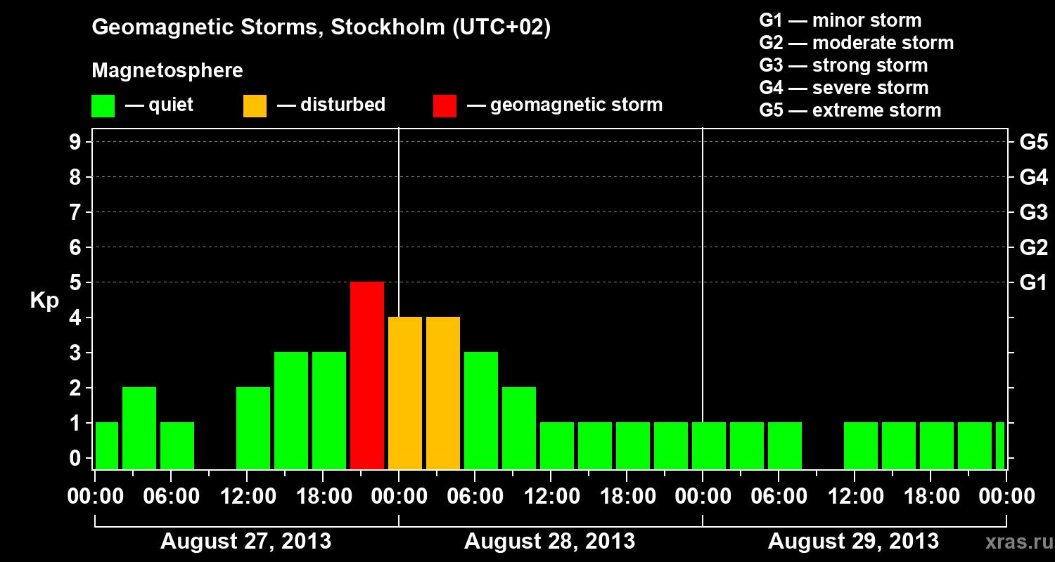 Geomagnetic storms in Stockholm — Aug 29, 2013