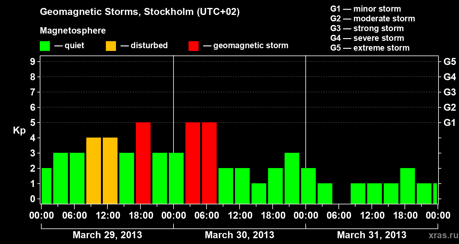 Geomagnetic storms in Stockholm — Mar 31, 2013