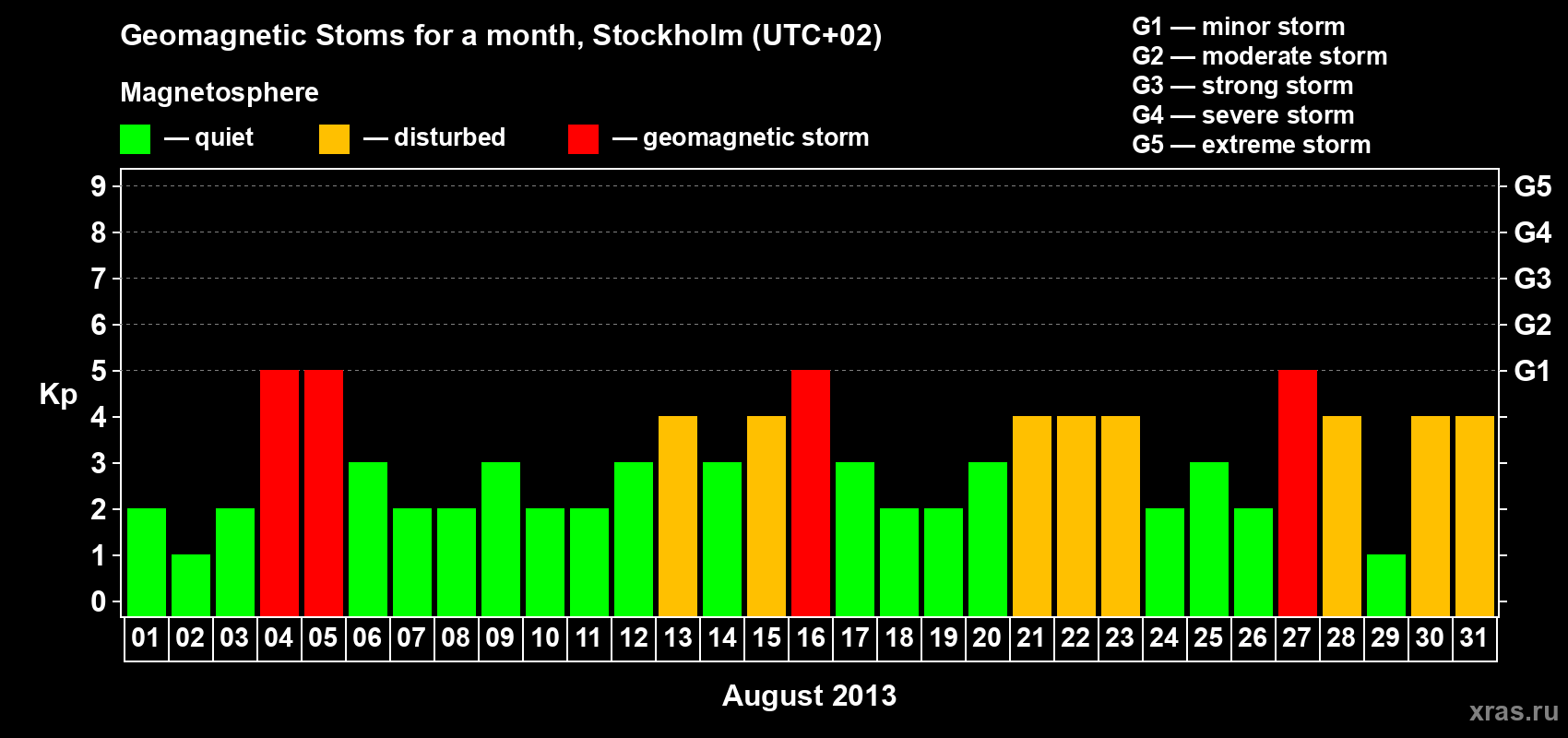 Geomagnetic storms in Stockholm in August 2013