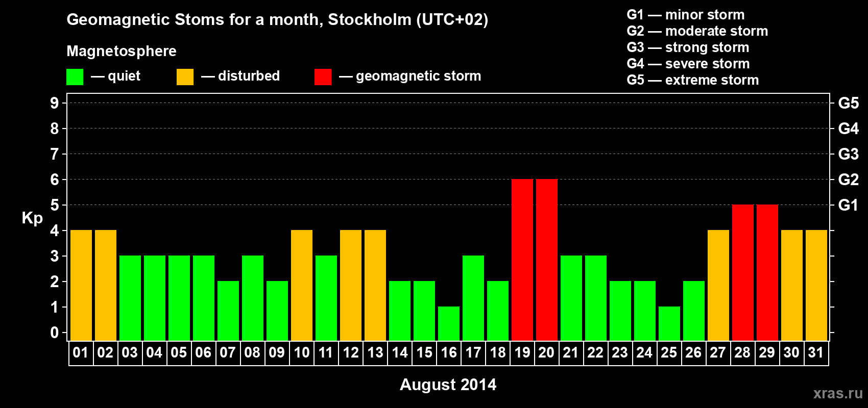 Geomagnetic storms in Stockholm — Aug 31, 2014