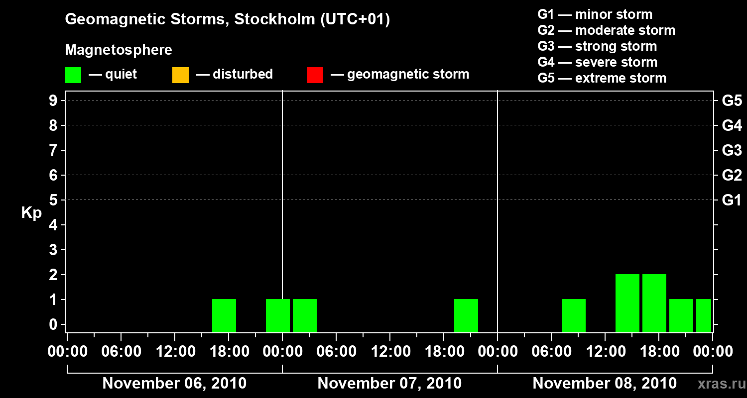 Geomagnetic storms in Stockholm on Nov 08, 2010