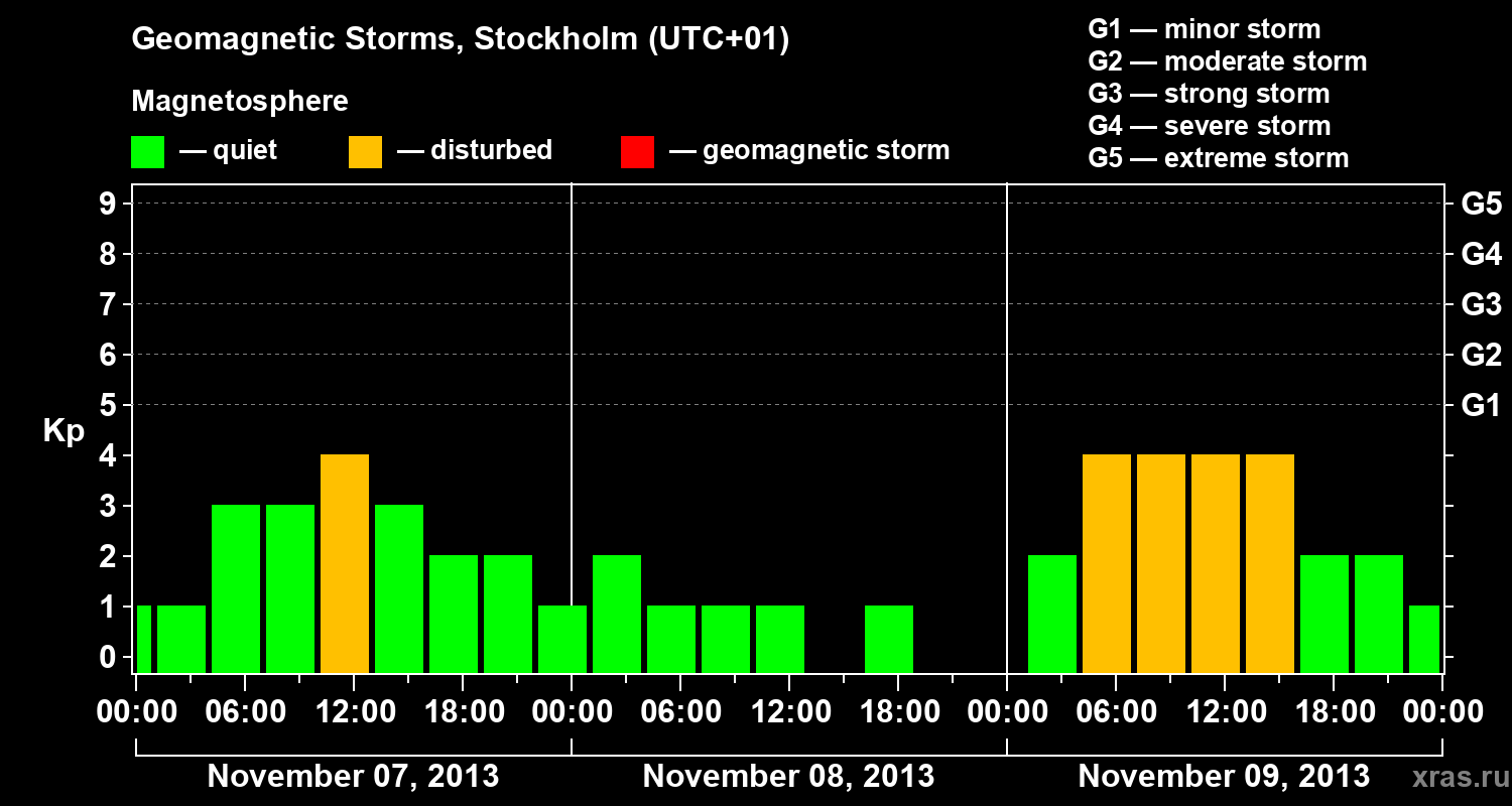 Geomagnetic storms in Stockholm on Nov 09, 2013