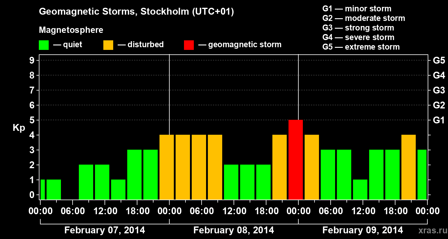 Geomagnetic storms in Stockholm on Feb 09, 2014