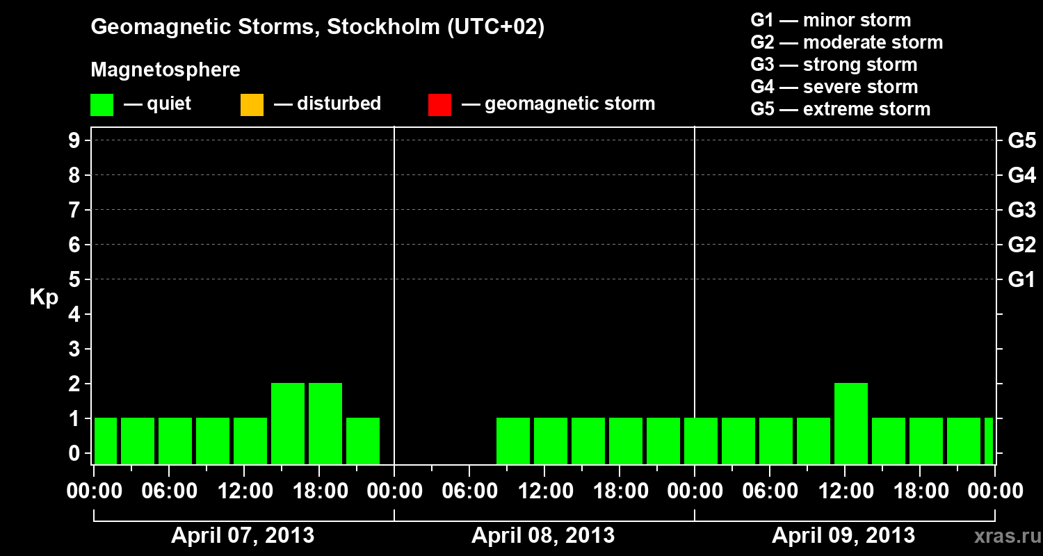 Geomagnetic storms in Stockholm on Apr 09, 2013