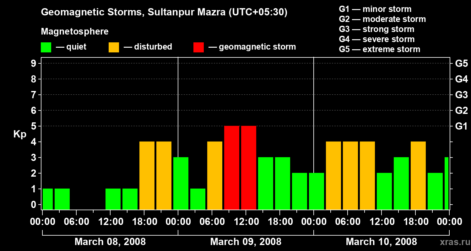 Geomagnetic storms in Sultanpur Mazra on Mar 10, 2008