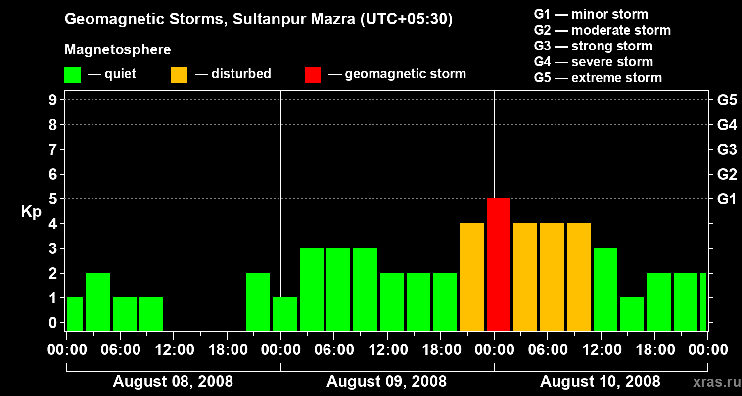 Geomagnetic storms in Sultanpur Mazra on Aug 10, 2008