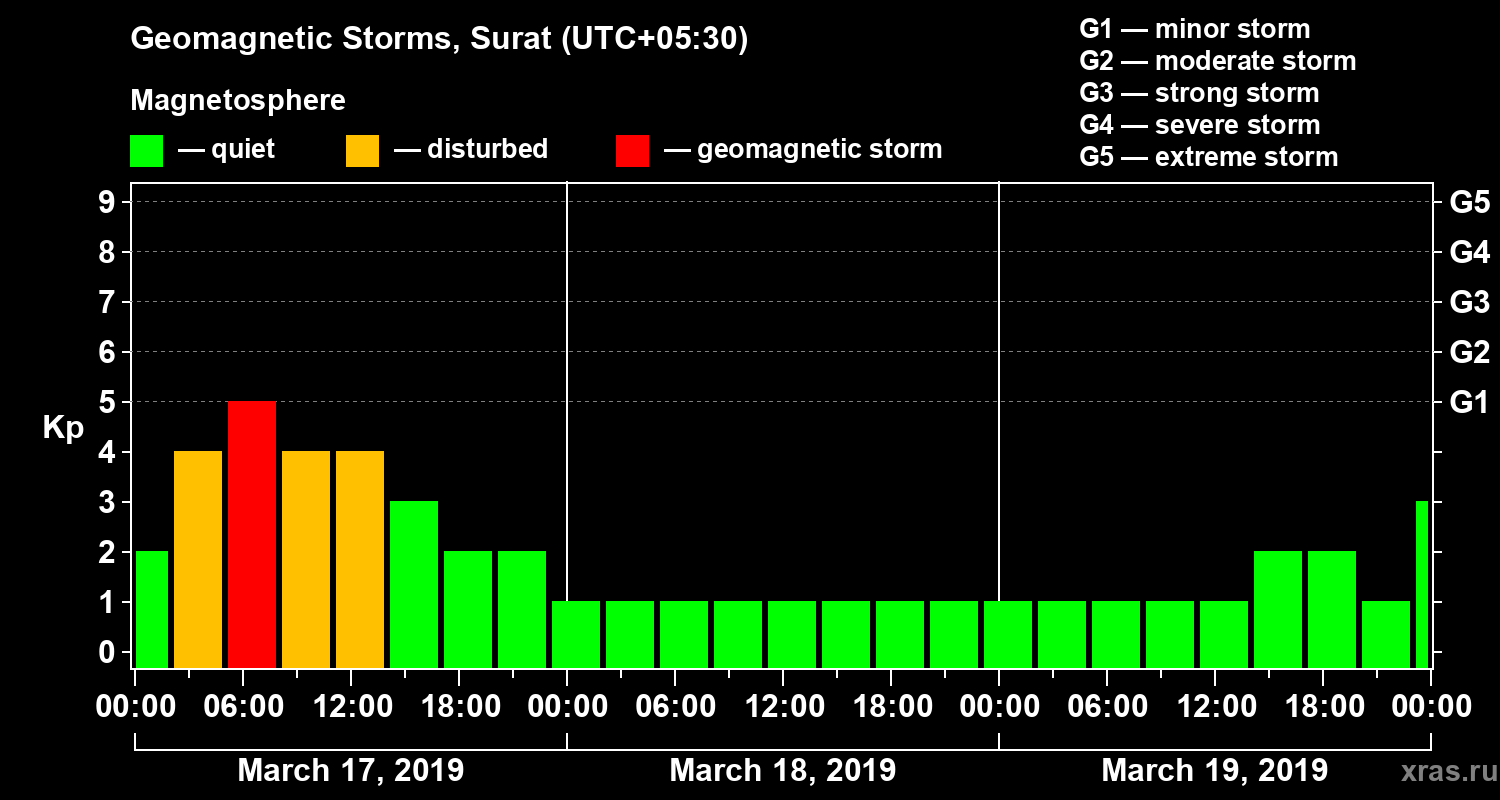 Geomagnetic storms in Surat — Mar 19, 2019