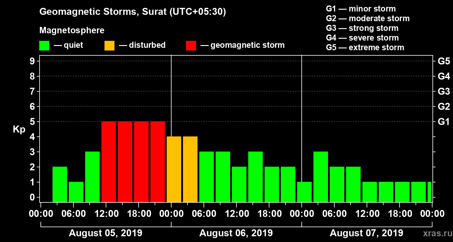 Geomagnetic storms in Surat — Aug 07, 2019