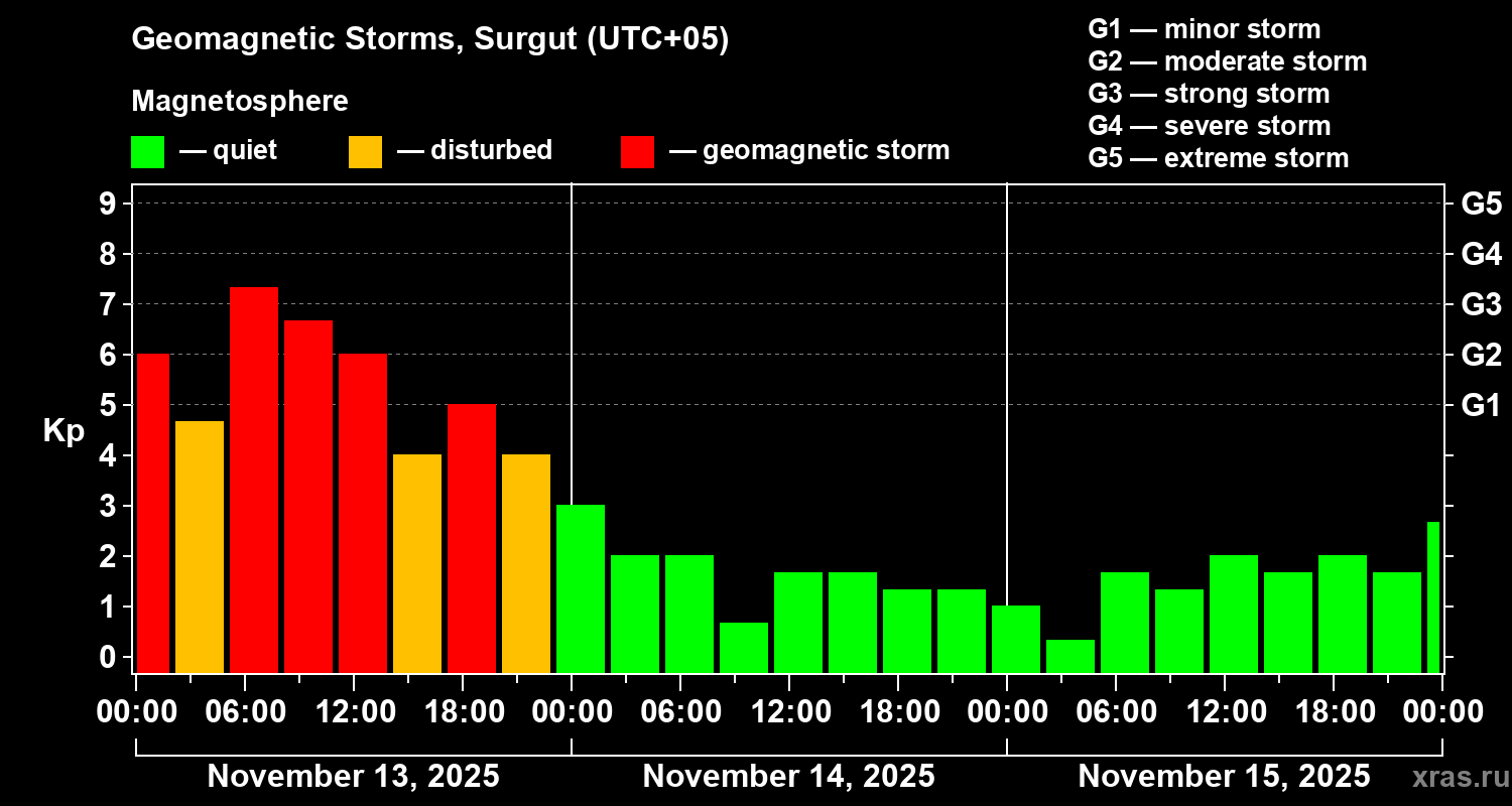 Geomagnetic storms in Surgut — Nov 15, 2025