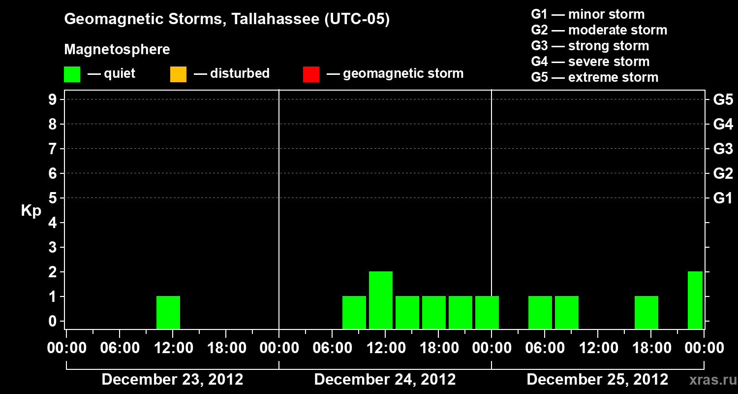 Geomagnetic storms in Tallahassee on Dec 25, 2012
