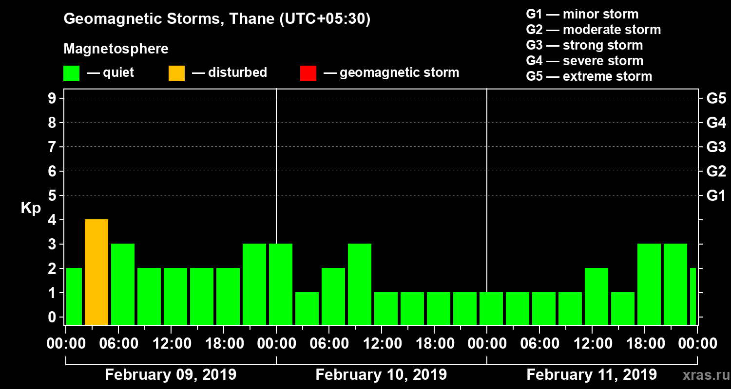 Geomagnetic storms in Thane in February 2019