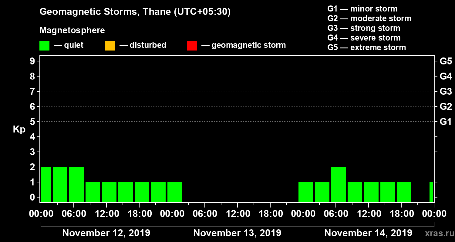 Changes in the geomagnetic index Kp from November 12 to 14, 2019 for mid latitudes