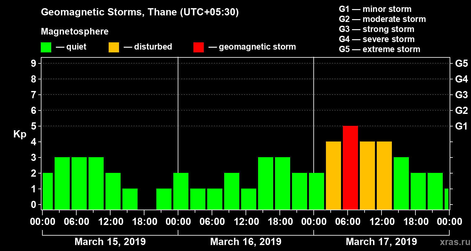 Geomagnetic storms in Thane — Mar 17, 2019